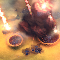 Pummels unowned land tiles pillaging improvements and damaging units. Exploring impact sites grants players a free Heavy Cavalry unit with no resource upkeep. If the tile contains a resource, that resource is undamaged and is restored after the tile is visited.