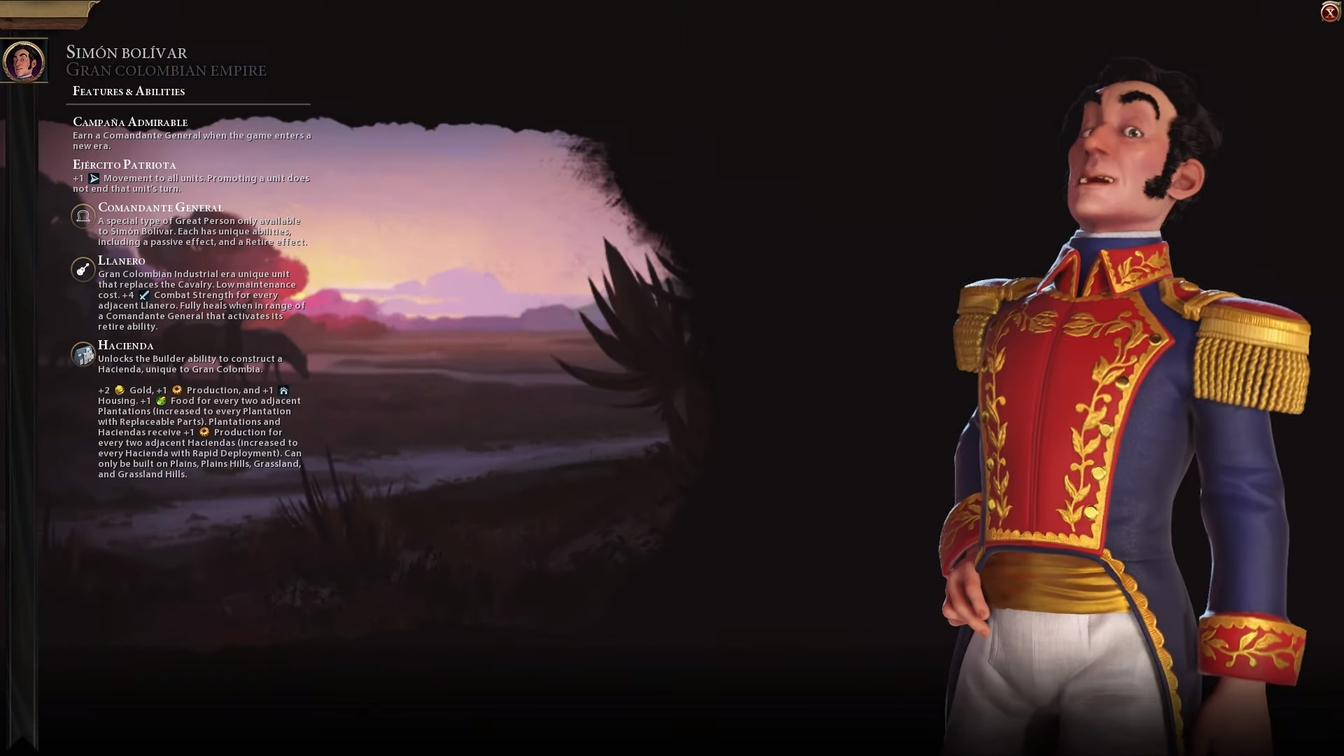 Simon Bolivar Leads Gran Colombia (Civilization.com)