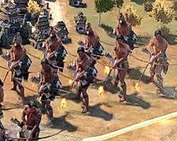 Mississippian Unique Ranged Unit. Has +3 Combat Strength against Fortified Districts and Siege Units. Applies the Burning status to tiles for 2 turns; Burning deals damage to Units that end their turn on the Burning tile.