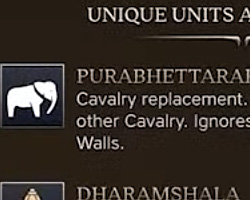Unique cavalry unit for Maurya. +5 Combat Strength vs. Fortified Districts.