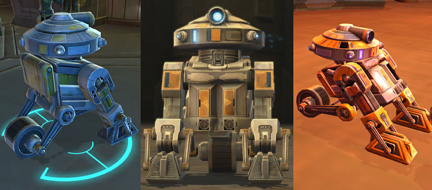 T7-01 is the Jedi Knight's first companion, encountered on the Jedi starter world of Tython. T7-01 was sent ahead along with other droids as a scout by the Jedi Council to investigate the Flesh Raider menace, but his restraining bolt has limited the functionality of his sensors, and he was captured by the raiders. Once freed, T7 quests briefly with the Jedi Knight as a guest starting around level 5, and joins as a permanent companion at the end of the Tython class quest series (around level 7-10), just before the Knight gains his first lightsaber. T7 can function as ranged DPS or he can tank, when necessary.